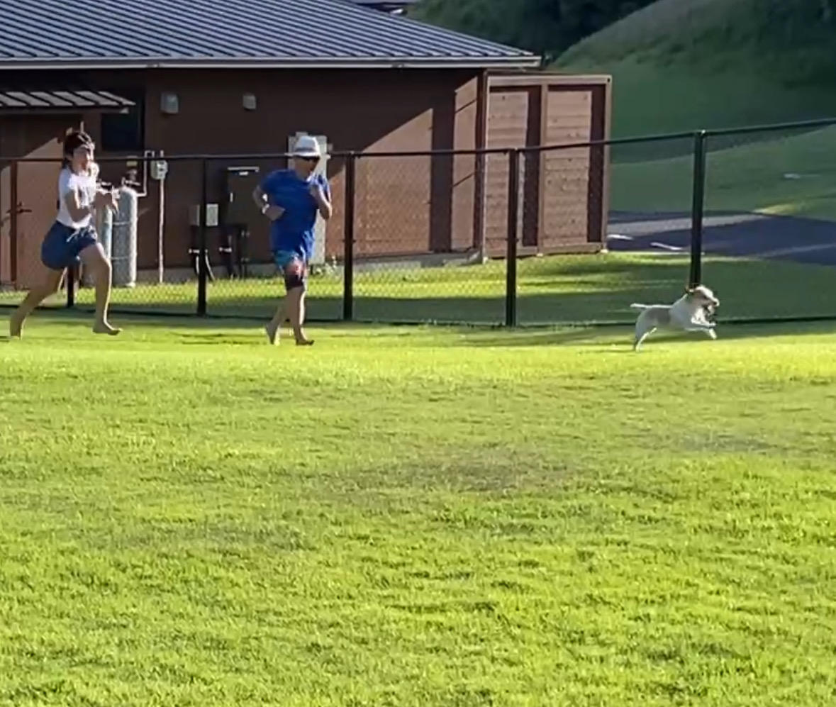 宿泊したドッグランは元ゴルフ場のグリーン⛳️だったのか、砂のバンカーもあり、持参したゴルフ道具でアプローチの練習も出来たよ!